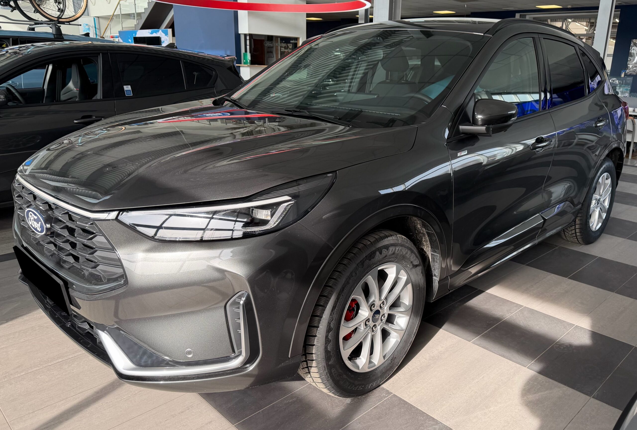 Ford Kuga 2,5 FVEH 183 KM AWD w wersji ST-Line X w lakierze Magnetic Grey z pakietami Driver Assistance, Winter, matrycowymi lampami MATRIX i fotelami AGR prezentuje się naprawdę świetnie